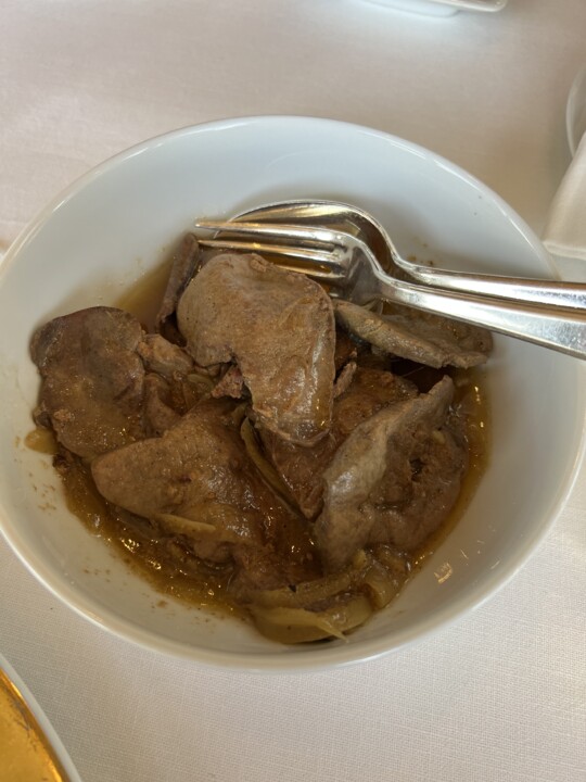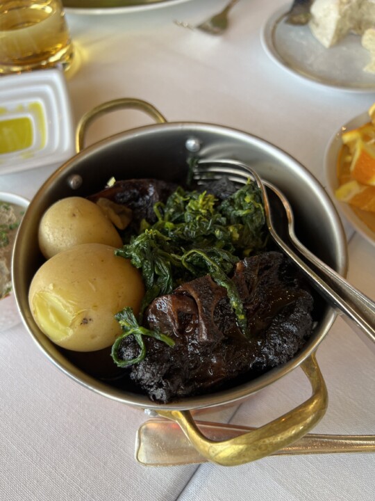 Um dos melhores pratos da noite. Sabor pujante, apresentando com perfeição o bacalhau tão típico da nossa gastronomia, mas fazendo uso de ingredientes (e partes do bacalhau) não tão usuais. Um prato que, como diria Noélia Jerónimo, merecia que se trouxesse pão.